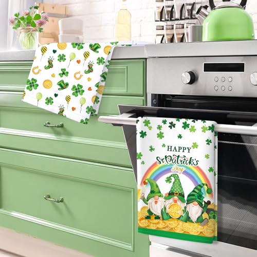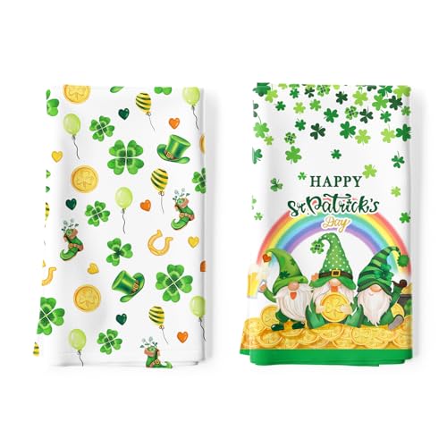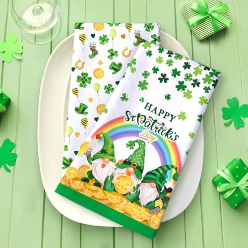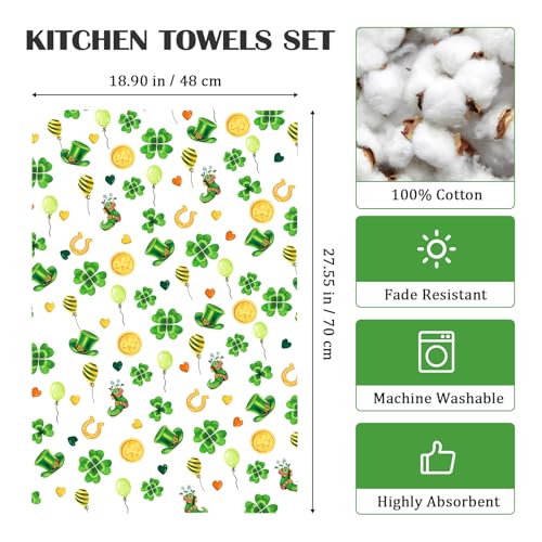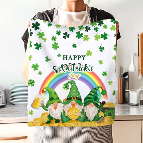 St.Patrick’s Day Gnome Tea Towels, Cotton Kitchen Towel 18.9 × 27.5 inch, Quick Drying Dish Cloth for Party Anniversary Holiday Decoration Housewarming Gifts