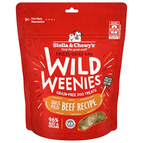 Stella & Chewy’s Freeze-Dried Raw Wild Weenies dog treats are made with responsibly sourced ingredients in our own USA kitchen. Stella and Chewy’s was once built on a philosophy that feeding your pet a wholesome diet very similar to what their ancestors enjoyed in the wild is the optimal way to help your pet thrive. These treats offer real raw nutrition and taste your dog will go wild for! For pet parents seeking to add nutrition, reward their dog or puppy for good behavior, or entice a picky eater, go with these freeze dried raw wild weenies. They’re the very best training treat or snack, as your dog will simply love them. Dog’s naturally crave meat much like they ate in the wilderness, and our Wild Weenies recipes are packed with responsibly sourced, animal-based protein from more than one meat sources for protein rich taste dogs crave with the nutrition they deserve. With low carbohydrates and no fillers, legumes, artificial colors, flavor or preservatives, these recipes will feed your dog’s wild side.