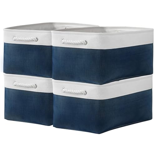 Size: 15.7 (L) x 11.8 (W) x 8.2 (H) inches, 4-piece set fabric storage basket , perfect collapsible rectangular gift basket, extra large storage space, decorative storage box for nursery organizers and large basket for storing more than a few items.