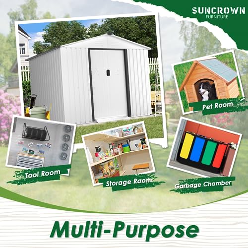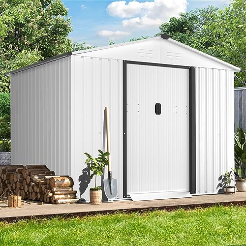 REASONABLE DESIGN – This outside storage shed is equipped with vents that provide ample airflow. Double sliding doors and solid handles make it easy to get out and in. The inclination of the roof can reduce the pooling of water.
