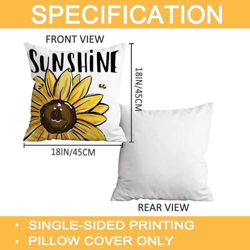 【Perfect Dimensions】 – Each set includes 4 pieces of 18×18 inch Sunflower Pillow Covers, tailored specifically for couches and sofas. Please note that these are covers only and do not come with pillow inserts. Hand-cutting and sewing may result in a slight deviation of 1~2cm, but this does not compromise the overall beauty and functionality of the covers. The vibrant pattern is featured only on the front side, adding a pop of color to your living space.