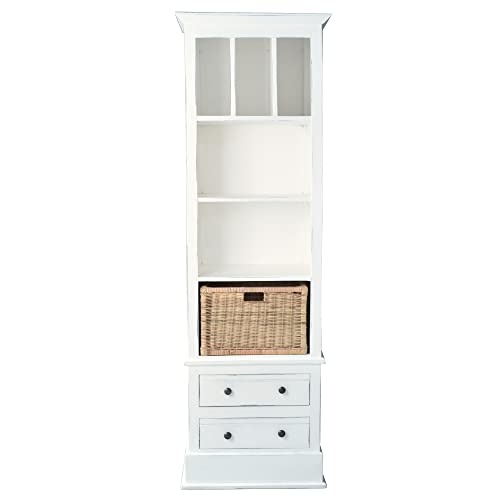 You will love the space-saving vertical design of this tall display cabinet in a tight space that you don’t want to waste. This rustic freestanding shelf with drawers and a basket looks as perfect in a modern farmhouse home as it would in a Hampton-style cottage beach house. Ideal bathroom linen cabinet, dining room credenza, kitchen pantry or bedroom chest wherever you have items to store. Its hand-rubbed whitewash finish highlights the vintage great thing about the wood. Thick base molding grounds this responsibly sourced solid mahogany wood furniture piece in a welcoming way. Matching white accent furniture, ranging from small end tables to large sideboards, is to be had to update your home with interior designer style. Here’s the most efficient part, no assembly is required, this open shelf credenza will arrive in one safe box and is able to enjoy.