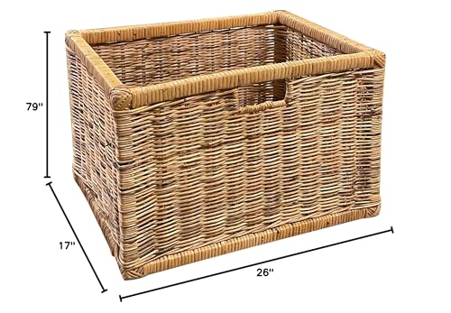 DIMENSIONS – 79”H x 17”D x 26”W ; Top molding: 2”H on 3 sides, back is flush ; Knobs: 1.5” round ; Drawers (2) 5“H x 14“D x 17“W, Top vertical storage (3): 13”H x 15”D x 6”W ; Shelves (3): 13”H x 15”D x 22”W ; Shelf thickness: 1” ; Basket: outdoor 11”H x 14”D x 17”W ; inside 11”H x 13”D x 16”W ; Shelf weight capacity: 50 lbs. ; Weight: 100 lbs