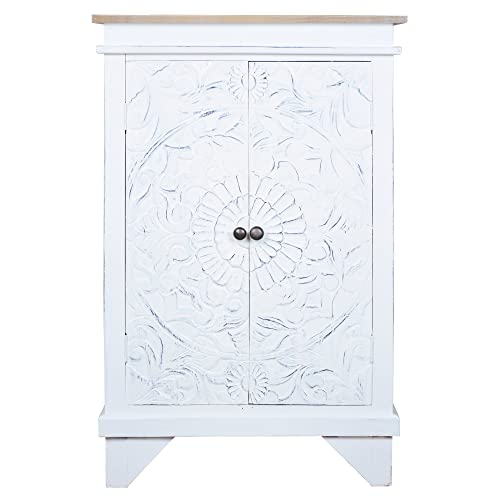 Sunset Trading Cottage Solid Wood Carved Accent Distressed White/Driftwood Brown | Fully Assembled Cabinet (CC-CAB236TLD-WWDW)