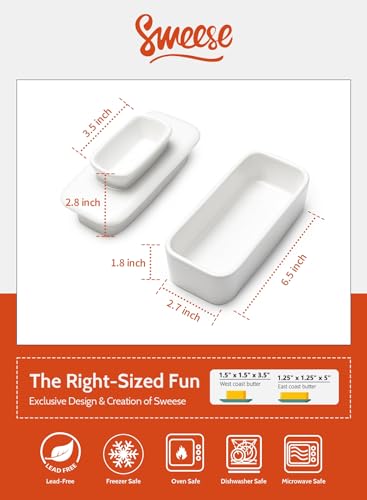 PRO-GRADE PORCELAIN & SAFE FOR DISHWASHER, MICROWAVE, OVEN, AND FREEZER – This Sweese butter dish is made of sturdy porcelain, chip-resistant and more sturdy than stoneware.