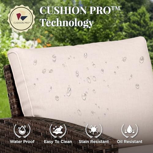 【CUSHIONPRO TECH】Patent CushionPro out of doors fabric with water-repellent, soil-release, and stain-resistant properties, making it easy to clean with just a sponge and cleaning spray. 4 thick soft cushion filled with 28D density phenol-free sponge with high resilience for comfortable sitting. Wide and deep seats reduce the pressure when sitting for a very long time, and assist you to be immersed in a comfortable environment