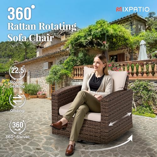 【360°Swivel Glider Chairs】Installing on a sturdy round metal base allows chairs to drift gently and swivel 360° for relaxing, with seat and button back cushions contribute to comfortable enhance.Swing your seat like a cradle for the ultimate relaxation whilst listening to music or watching your children play out of doors