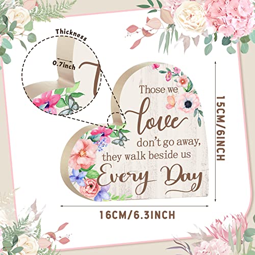 Sympathy Gift Memorial Heart Present for Loss of Loved One Wooden Remembrance Bereavement Gift Condolence Sign Loss of Father Mother Son Brother Decor 6.3 x 6 x 0.7 Inches (Flower Style)