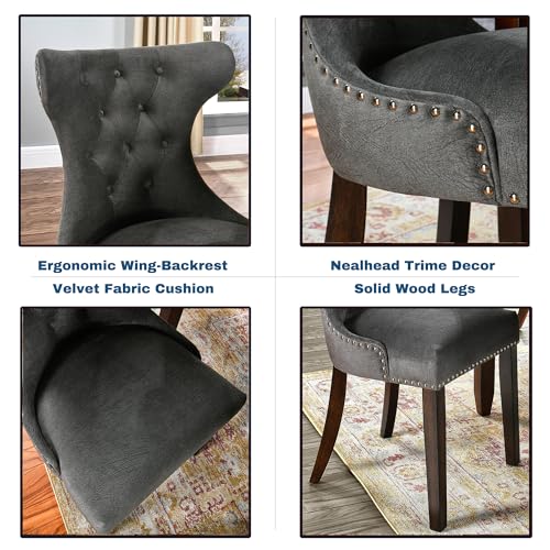 Upholstered Velvet Chairs: Comes with 4 velvet fabric upholstered chairs so you’ll comfortably sit down down for a long dinner with lovers,family and friends. The high backrest of each chair has soft foam inside for great comfort. The nailhead trim around is another unique highlight, simple but special.