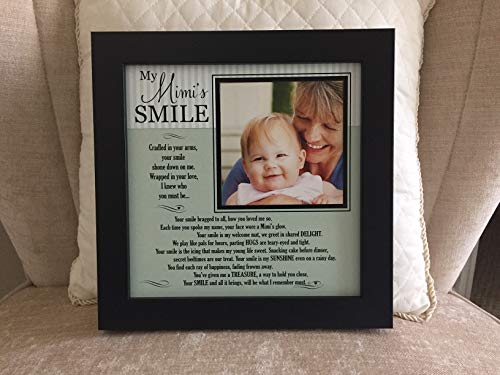 9.5 x 9.5 outer dimension black photo frame for Mimi for wall or table display features My Mimi’s Smile poem written by Teri Harrison. This sentimental grandparent frame Mimi will love, includes a 4×4 sq. photo opening. Made in the united states. An appreciated gift for Mimi from a brand new grandchild or grandchildren. A touching gift for Mimi for Mother’s Day, birthday, vacation or different big day you wish to have Mimi to understand how much she is loved.