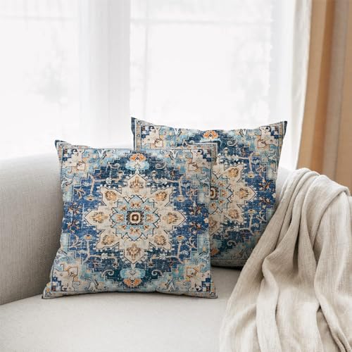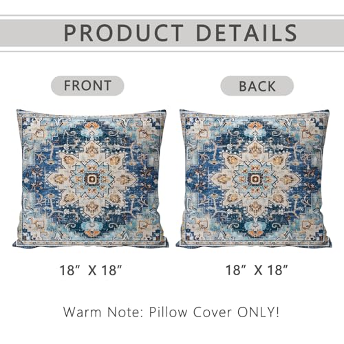 Double-Sided Printing Design: Our Blue Light Blue Bohemian Pattern Persian beige pillow cover is printed with the halloween Blue Light Blue Bohemian Pattern Persian beige design on both sides and a top of the range invisible zipper, presenting an impeccable aesthetic. Beautiful and sturdy, pull smooth, easy to clean and wear. Warm tips: inserts is not included, only pillow covers.