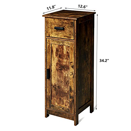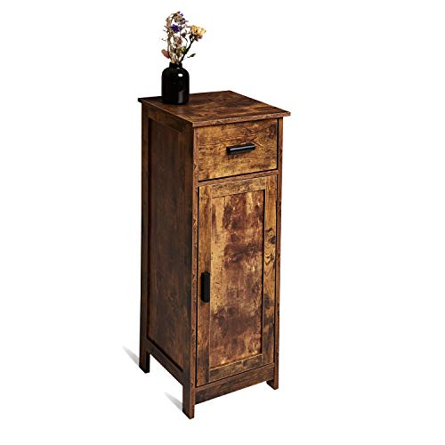 Tianlang Retro Industrial Storage Cabinet,Floor Cabinet with 1 Drawer and 1 Doors,Multifunctional Cabinet for Living Room,Kitchen,Bathroom,Easy to Place Stable Wood Frame,Retro Brown LJBC001F