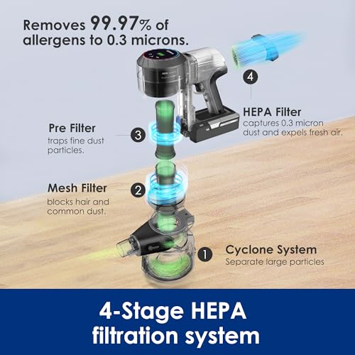 High performance, ultra-quiet digital motor delivers 130W of strong suction. Clean quietly with less disturbance to circle of relatives and pets.