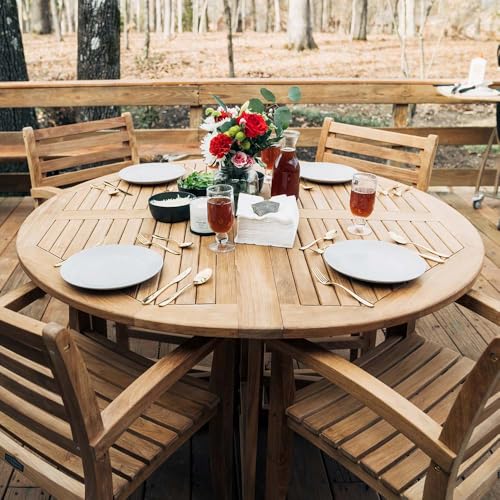 ENJOY THE OUTDOORS: This beautiful Teak Round dining table is designed to complement the easiest lounge area of your patio or porch dining set. It seats up to four and may also be folded in half, wholly folded, or open in a full round size.