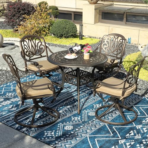 【Built To Last Cast Aluminum】 – At TITIMO, we bring you the most productive outside furniture to be had. Our table and chairs are made of sturdy and durable cast aluminum that may be rust-resistant for years of out of doors use. If you use this set by the pool, its all-weather quality helps prevent water damage caused by wet swimsuits and splashing