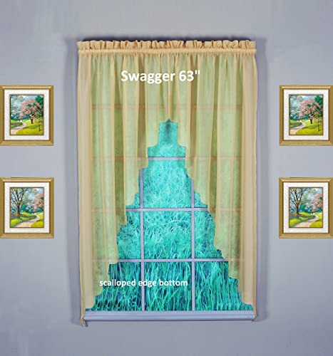engineered with scalloped edges on swagger pair 63″, supper wide in 90″ for best fullness of top remedy, use Valance 14″ or Fan Insert as insert for toppers, add more valance or fan inserts for wide windows.