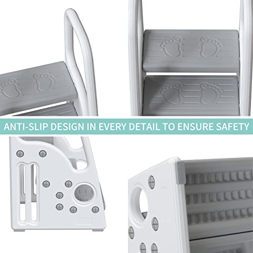 [High-quality materials] – Learning Tower with gray and white colors design,smooth and burr-free,the raw material is high-grade plastic without BPA, which is light in weight and good in bearing capacity. could hold as much as 210 lbs.