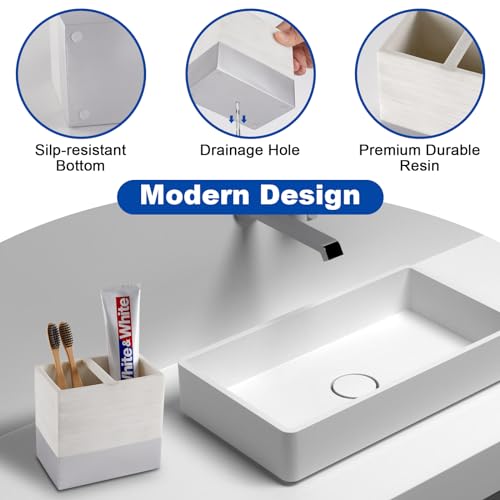 STYLISH & DURABLE RESIN MATERIAL: Crafted from high-quality resin the use of innovative drawing technology, this toothbrush holder boasts a stunning design that enhances any space. Its durability ensures it won’t break easily