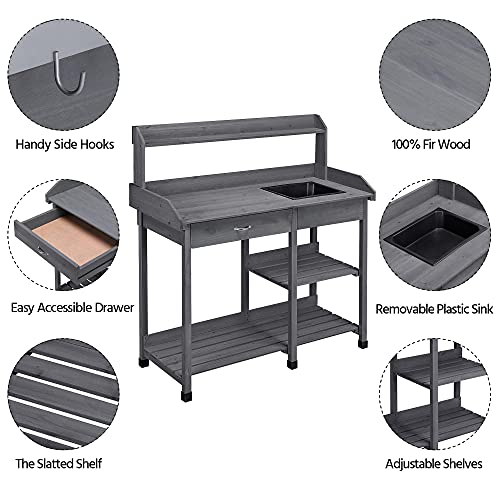 Topeakmart 45.2×17.7×47.6” (LxWxH) Potting Benches Outdoor Garden Potting Table Work Bench with Removable Sink Drawer Rack Shelves Work Station, Gray