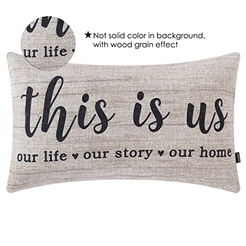TRENDIN Farmhouse Quote Pillow Covers with This is Us 12×20 inches Rustic Decor Lumbar Pillowcase with Saying Cushion Case for Sofa Couch Housewarming Gifts Family Vintage PL857TR