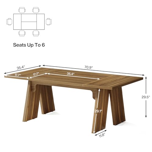 Perfect for Circle of relatives and Social Gatherings: This wood dining table has a spacious 71″ x 35″ surface and can comfortably seat up to 6-8 people. It’s perfect for intimate Circle of relatives meals and vigorous gatherings with friends, ensuring everyone has their own space even as dining.