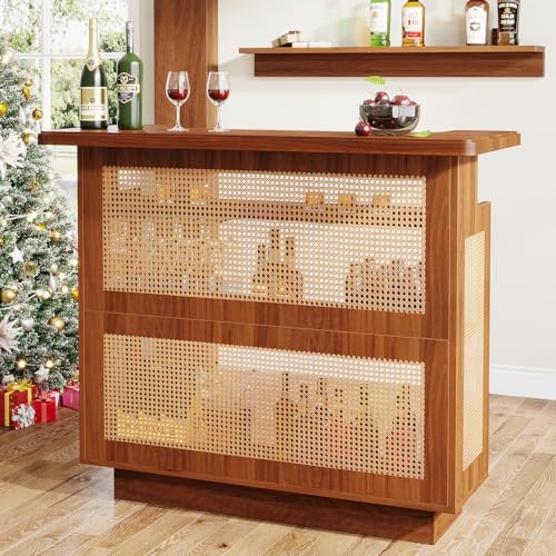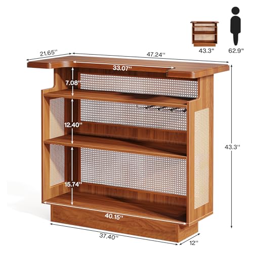 Unfashionable Rustic Aesthetic: This bar cabinet boasts a sophisticated woven rattan finish that exudes a vintage and cozy feel. Its farmhouse brown hue fits seamlessly with different interior designs and enhances the overall appeal