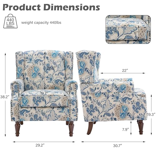 Attractive Printed Pattern Chair – This armchair features nailhead trim, rolled armrests, vintage wooden legs and a beautiful patterned design for a standard and chic look. Ideal for waiting room, living room, bedroom, dressing room, dressing room, place of job, reception room.