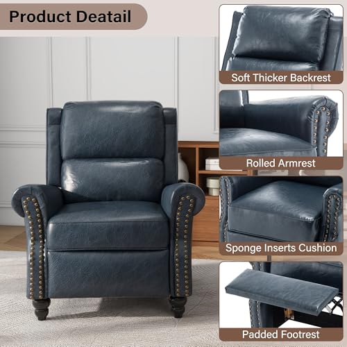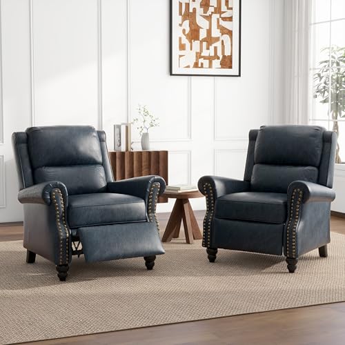 • Uixe pushback recliner chairs set of 2 pu leather armchair push back accent chair rivet trim club chair home theater overstuffed single sofa reading seat for living room navy blue  urban country home decor