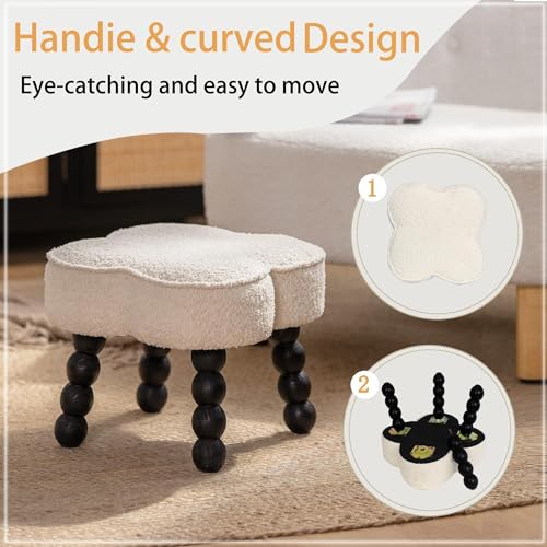 Ultimate Comfort Small Foot Stool Ottoman – Luxuriously Soft Sherpa Cover, Four-Leaf Clover Shape, Beaded Stool Legs – Ideal for Living Room, Bedroom, and Office – Enhance Your Relaxation Experience