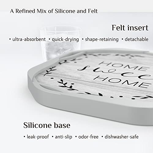 HYBRID SILICONE AND FELT – It combines the most efficient of both materials for a lightweight yet durable, all-purpose coaster. The non-slip silicone base keeps your cups in place whilst the super absorbent felt pad soaks up any moisture from your glass. In addition, the case has a lip with charming reliefs around the edges, which nicely frames the tailored insert, preventing it from popping up