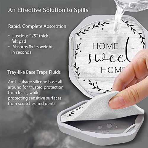 RESPECT WOOD – Featuring material mashup, it effortlessly protects your table – all day, on a daily basis [ Safe from Spills and Permanent Damage ] The 1⁄5″ thick felt pad can absorb as much as ¼ cup of liquid in seconds, and the silicone base offers leak-free protection whilst protecting your sensitive surfaces from scratches and dents [ Elevated Experience ] The embossed geometric pattern enhances grip without leaving residue whilst keeping air circulating to make the coaster easier to pick out up