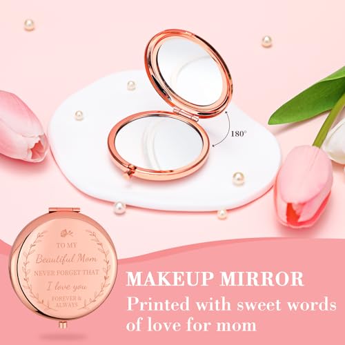 【Rose Gold Mirror & Keychain】The gorgeous rose gold compact mirror, engraved with beautifully words, reminds your beautiful mom that your love for her is eternal, melting her heart. The keychain is made of stainless steel, simple and portable. Express “as my mom, my best friend, love at all times” in an attractive way to show your love for your mom