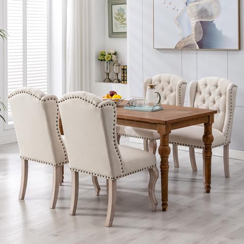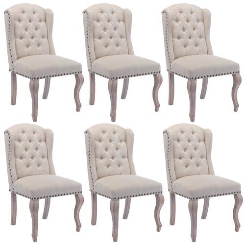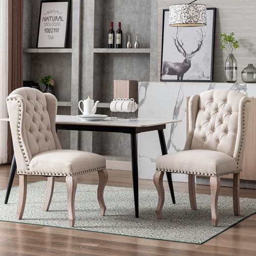 [NICE DECOR] These dining chairs set of 2 would be great decor for any home theme: farmhouse, unfashionable or mid century modern. Whether as accent chairs or dining ones, they impress your circle of relatives and guests with copper nailheads, diamond tufted backrest and thick sturdy fabric