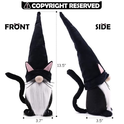 ADORABLE DESIGN – The gnomes features long plush white beards and has a long black tail and paws, as befits a cat. The black cap is adorned with cute cat ears! This cat gnomes is perfect for gifting or so as to add to your Halloween winter decor!