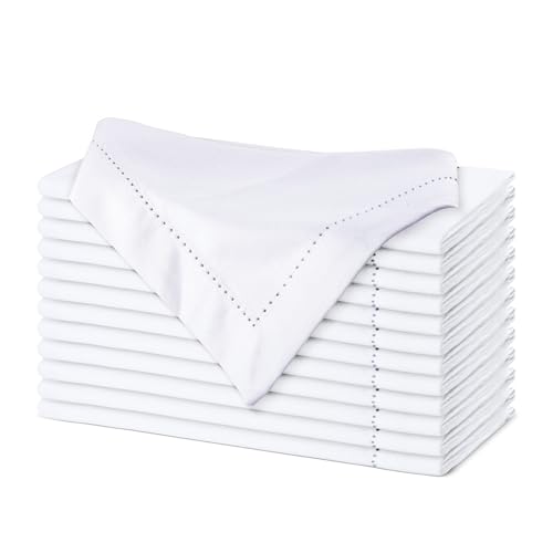 Urban Villa Cloth Napkin Set of 12, Hemstitch Solid White 20×20 Inches, Premium Soft Cotton Highly Absorbent, Reusable & Washable Dinner Table Napkins for Home and Weddings