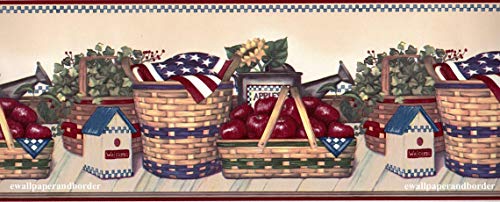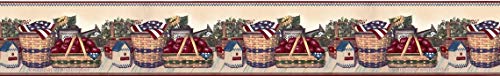 “Fortify your room’s style with our high-quality, washable wallpaper borders. Our stylish borders, designed with vintage American symbols, add an instant fashionable accent to any room. They’re made from the finest materials, ensuring long-lasting, undamaged walls. Turn into your room with our beautiful borders, bringing color, character, and detail in a very simple and quick way. Specifications: Pattern Number: 5803475 5 yard Spool Border height: 7″ Color: red, white, blue, green Made in Canada”