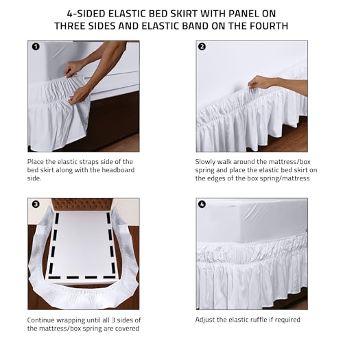 • Utopia Bedding Queen Elastic Bed Ruffle Easy Wrap Around Ruffle Microfiber Bed Skirt with Adjustable Elastic Belt 16 Inch Tailored Drop Hotel Quality Bedskirt Fade Resistant Queen White