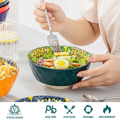 • vancasso Cereal Bowls Ceramic Soup Bowls Set of 6 26 oz Colorful Bowls Set for Kitchen Dishwasher Microwave Safe for Cereal Soup Oatmeal Ice Cream Salad Pasta etc