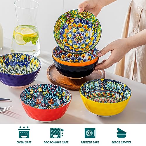 vancasso Cereal Bowls, Ceramic Soup Bowls Set of 6, 26 oz Colorful Bowls Set for Kitchen, Dishwasher & Microwave Safe- for Cereal, Soup, Oatmeal, Ice Cream, Salad, Pasta etc.
