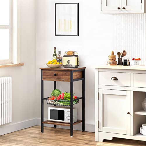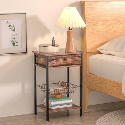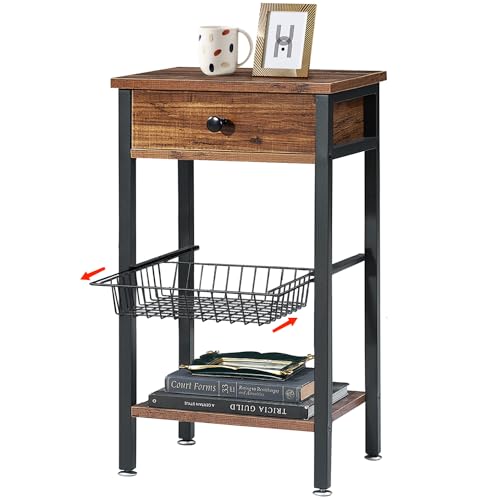 VECELO 27.6″H Tall End Side Tables, Night Stands with Pull-Out Metal Basket for Telephone Entryway/Living Room/Bedroom/Kitchen,Small Spaces,1 Set