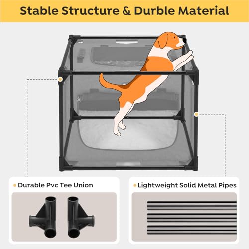 Stable Structure – Veehoo soft dog crate adopts durable pvc tee union. Lightweight metal frame and strong hooks and loops throughout make dog kennel sturdy and stable.