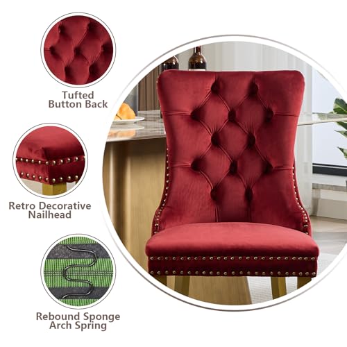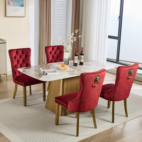【Elegant Design】: These dinning chair with their handmade decorative nail trim and buttoned velvet backrest, adorned with striking lion head pulls. This combination imbues the dining room with a regal and elegant aesthetic, perfect for adding a touch of sophistication and luxury to any dining room or kitchen.