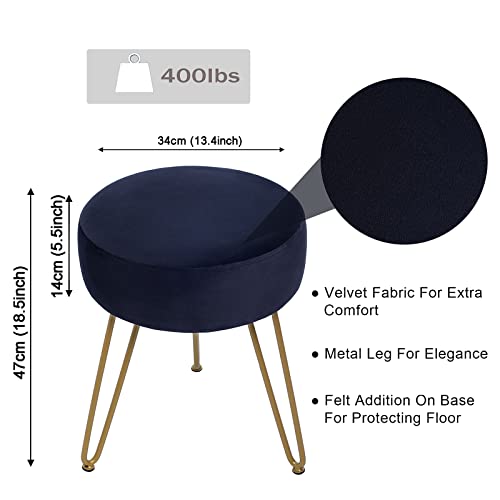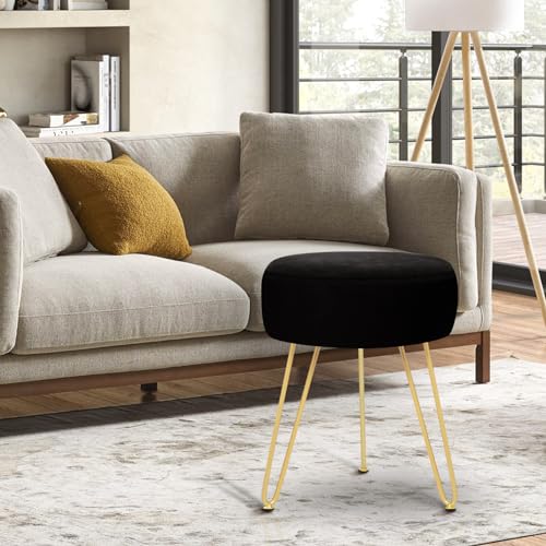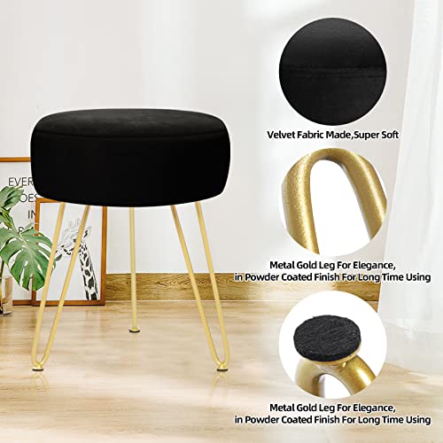 【Stylish design】:Slick round Ottoman seats are wrapped in ornate velvet upholstery for ultimate comfort,3 golden metal legs add a brand new ambience to your room,3 rubber pads on the bottom to provent floor scratches and non-slip