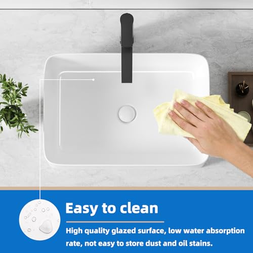 Easy cleaning top mount sink: The bowl sinks for bathrooms ceramic body of the lavatory basin has low absorption rate, the counter bath sink surface is smooth and easy to clean