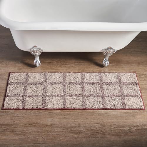 Primitive Window Pane Check Design: The VHC Brands Bathroom Bath Mat from the Connell Collection features a classic window pane check design, adding a touch of rustic country charm to your bathroom.