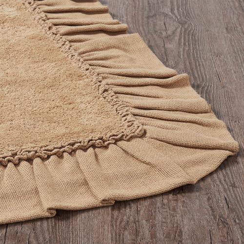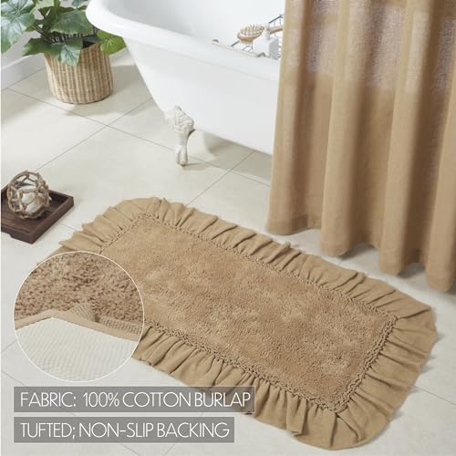 PREMIUM BATH MAT: A pretty good core provides a thick cushion to sink your feet into and sturdy cotton to soak up water providing a protected and relaxed post-shower landing. The 27 by 48 inch rug Includes a ruffled edge in elegant heat tan burlap.