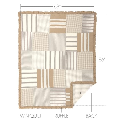 HAND-QUILTED PATCHWORK: Large, even blocks in easy patterns are stitched in combination moderately with Stitch within the Ditch and Echo quilting techniques for superior style and durability. Ruffled Edging in natural tan adds soft, country chic style to this brand new farmhouse quilt.