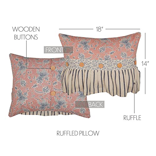 BOHO FLORAL: Includes a unique dusty rose and navy floral design with soft vintage main points including accent buttons and a loose ruffle in navy and creme stripes.