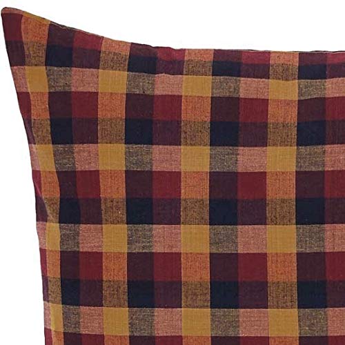 COUNTRY PATCHWORK DESIGN: Traditional style that compliments any country, rustic, or Americana home. Heritage Farms features deep burgundy, mustard, and black in a traditional plaid. Reverses to same as front.