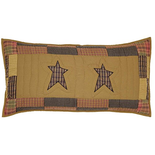 VHC Brands Stratton Primitive King Sham Tan Appliqued Cotton Star Hand Quilted Rectangle Bedroom Decor